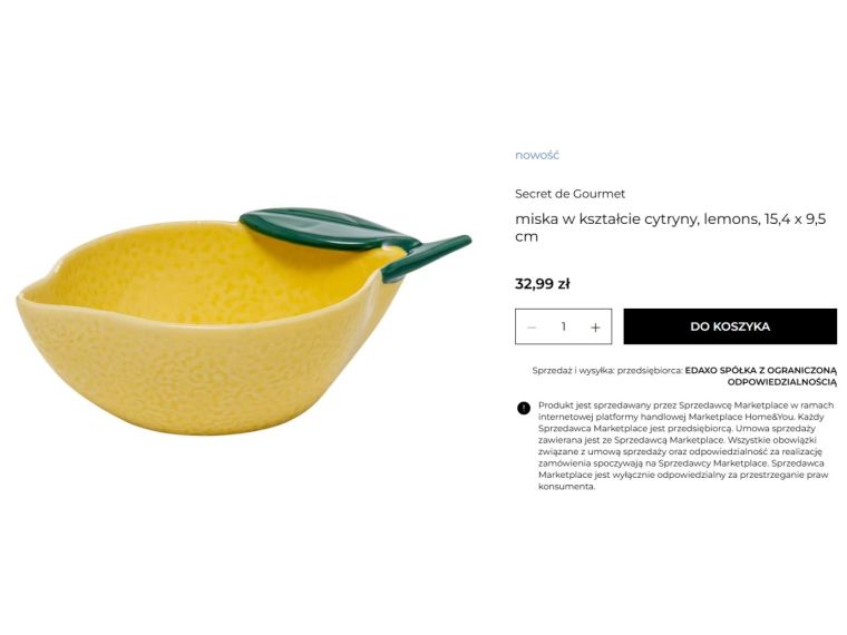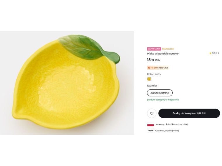 Różnica pojawia się jednak w cenie. Miska cytryna z Home&You kosztuje 32,99 zł, czyli ponad dwa razy więcej niż podobny produkt z Sinsay. Jej wymiary wynoszą około 15,4 × 9,5 cm, więc jest to raczej niewielkie naczynie dekoracyjne, przeznaczone głównie na przekąski lub owoce. Wizualnie oba produkty są bardzo zbliżone, dlatego wiele osób może zastanawiać się, czy warto dopłacać do wersji z Home&You. Jeśli najważniejszy jest efekt dekoracyjny i modny, wakacyjny akcent w kuchni, propozycja z Sinsay wydaje się wyjątkowo atrakcyjna cenowo. W praktyce oba naczynia spełniają bardzo podobną funkcję i wpisują się w ten sam trend cytrynowych dodatków inspirowanych włoskim stylem.