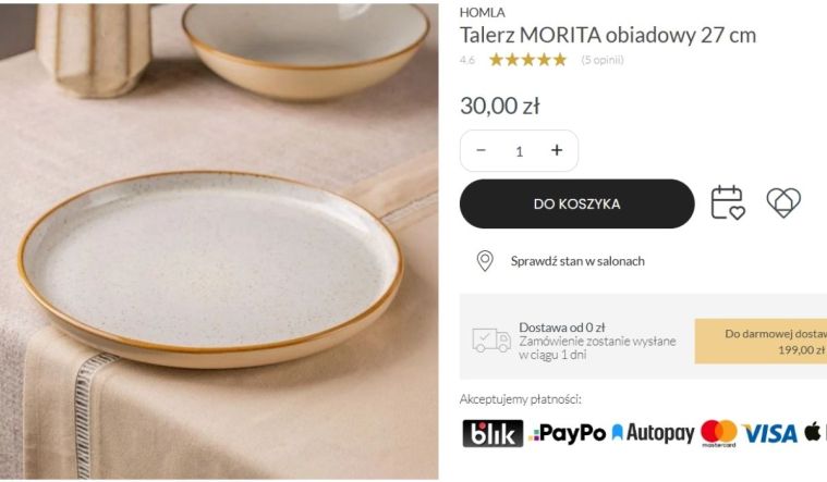 Talerz z Homli choć piękny, to drogi. Sinsay prawie w tej samej cenie ma komplet talerzy