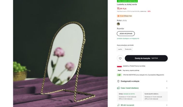 Na uwagę zasługuje także minimalistyczne, ale wciąż pasujące do wnętrz w stylu vintage lusterko w złotej ramie. Teraz w Sinsay kosztuje ono tylko 15,99 zł.