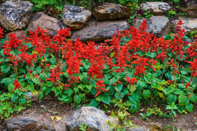 Kolorowe kwiaty szałwii błyszczącej będą wspaniale komponować się z innymi roślinami kwitnącymi, jak: