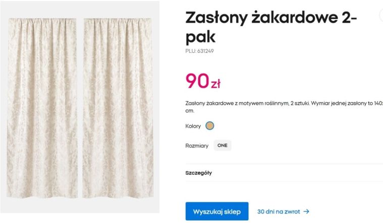 W Pepco pojawiły się zasłony, które od razu przyciągają uwagę i to nie bez powodu. To żakardowe zasłony sprzedawane w zestawie dwóch sztuk, dzięki czemu od razu można stworzyć spójną dekorację okna. Każda z nich ma wymiary 140 x 250 cm, więc bez problemu sprawdzi się zarówno przy standardowych oknach, jak i przy większych przeszkleniach czy drzwiach balkonowych.