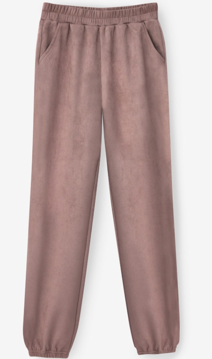 Zamszowy materiał jest miękki i przyjemny w noszeniu, co czyni je odpowiednim wyborem zarówno na codzienne wyjścia, jak i domowy relaks. Stonowany brąz idealnie współgra z kolorystyką bluzy, a dopracowane detale nadają całości schludny wygląd. Spodnie również są dostępne w rozmiarach od S do XXL, a ich cena wynosi 40 zł.