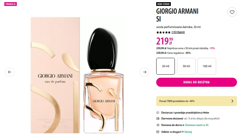 Ile kosztują perfumy Giorgio Armani Si w promocji Hebe? Można sporo zaoszczędzić