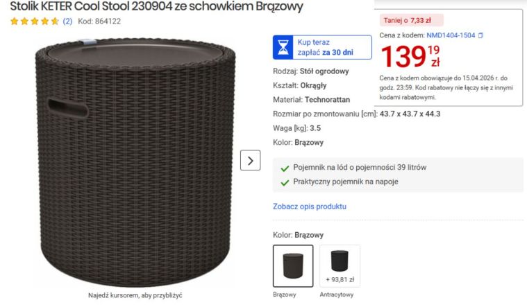 Za 139 zł dostajesz coś, co spokojnie mogłoby stać obok dużo droższych mebli. Brązowy kolor jest bardzo uniwersalny, nie gryzie się ani z jasnymi poduszkami, ani z zielenią roślin. Ja postawiłam go obok donic z pelargoniami i od razu zrobiło się przytulniej. Nawet jeśli balkon masz naprawdę mały, ten stolik nie przytłacza przestrzeni, bo jest kompaktowy i lekki wizualnie.